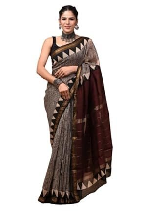Women’s hand block printed silk saree 6.3 m including blouse piece