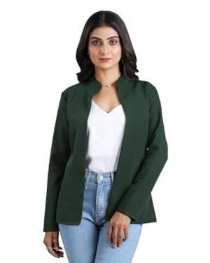 Women’s Plain Butter Crepe Blazer | Versatile Polyester Jacket Everyday to Special Occasions | All-Season Dark Green Jacket with Round Collar, Full Sleeves, Regular Fit