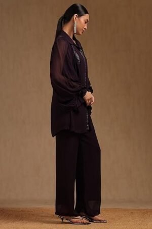 Womens Georgette Solid Co-Ord Set With Mukaish Work