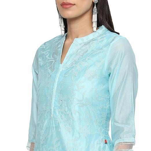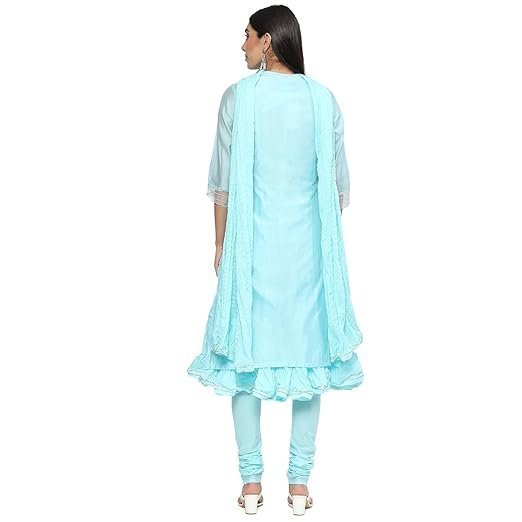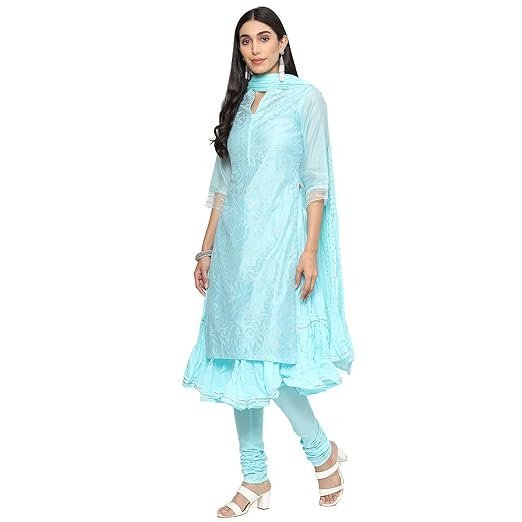 Women Cotton Blend Silk Flared Kurta Churidar Suit Set