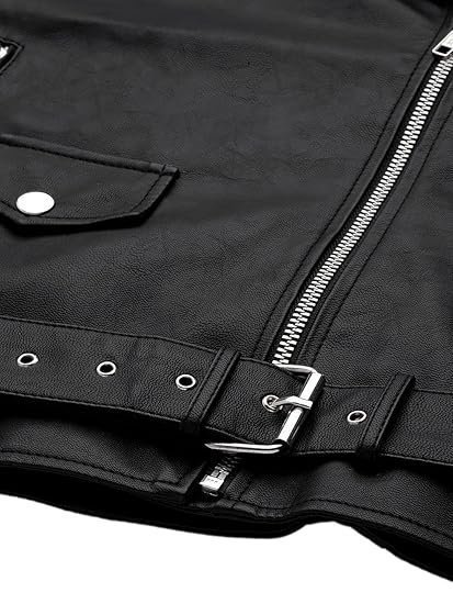- Stay stylish and practical with our Black Faux Leather Belted Jacket, featuring multiple pockets for all your essentials.