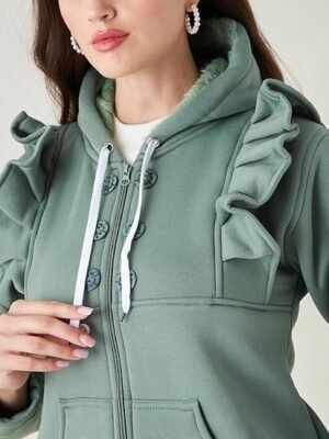 Casual Solid Full Sleeves Stylish Women Fleece Jacket with Zipper Hoodie II Hooded Neck II Winter Wear