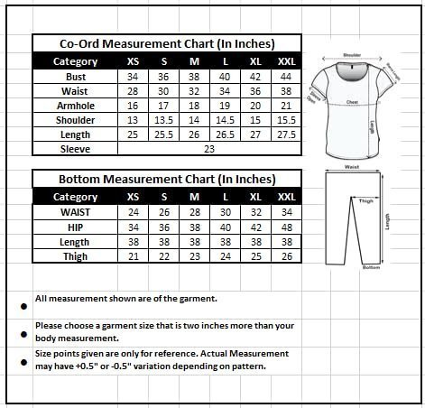 - Size :: Top Length : 25.5 Inch| Bust Size : 36 Inch | Sleeve Length : 23 Inch | Bottom Length : 38 Inch | Waist : 26 Inch | Hip : 36 Inch | Bottom Waist Type : Full Elastic