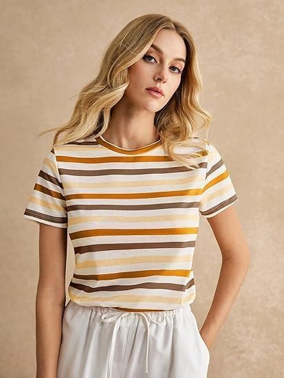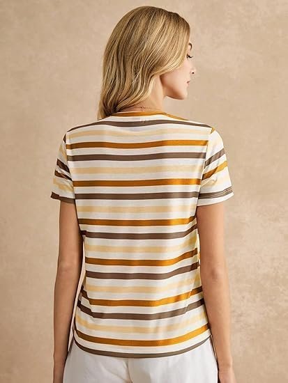Tops for Woman | Spandex Top | T-Shirt | Tshirt | Western | for Jeans | Short Sleeve | Stretchable | Striped Printed