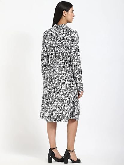 Viscose Spread Collar A-Line Dress