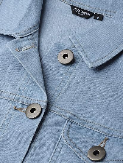 - Crop denim jacket with spread collar, full sleeve, contrast stitching and straight bottom hem