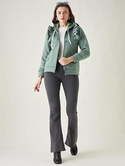 Women’s Cotton Winter Jacket Sweatshirts Casual Drawstring Clothes Zip Up Hoodie With Front Pocket Ii Womens Hoodies Ii Womens Jacket Ii Winter Sweater Hoodie For Women & Girls