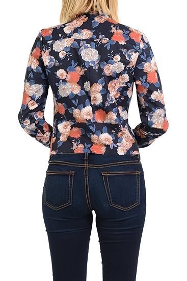 Womens Floral Casual Lightweight 3/4 Sleeve Fitted Open Blazer