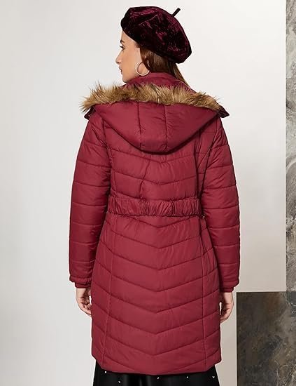 Women’s Polyester Long Line Regular Fit Parka Quilted Jacket (Puffer Jackets)
