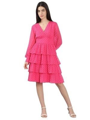 Women’s Polyester Fit and Flare Knee-Length Dress