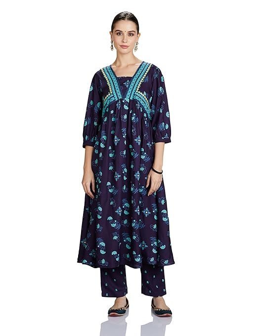 Women’s Rayon Floral Kurta and Pant Set