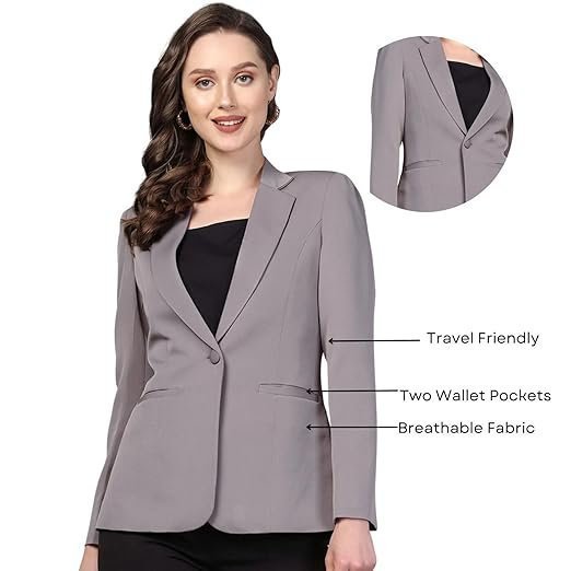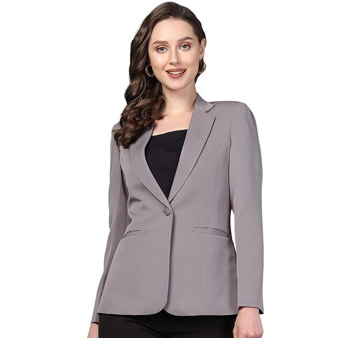 - Premium Formal Design: Powersutra Stylish grey women’s blazer with a notched lapel and single-breasted button closure is ideal for office wear, business meetings, and formal occasions.