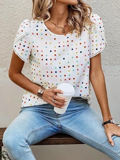 Be the first to review “Women’s Twill Polka Dot White Printed Half Sleeves Tops for Women” Cancel reply